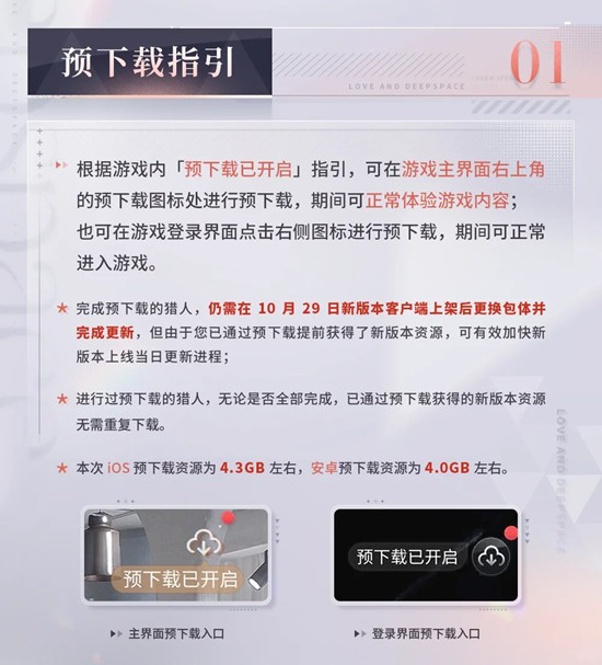 以上就是小编为大家带来的《恋与深空》10月29日预下载与客户端更新全攻略,更多关于新版本角色互动机制、隐藏剧情触发条件的深度解析,请持续关注恋与深空专题站。