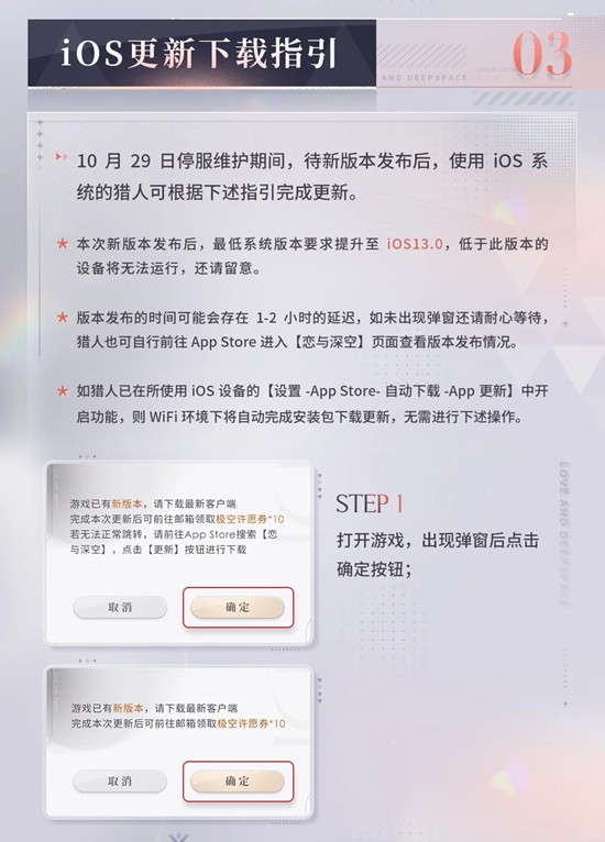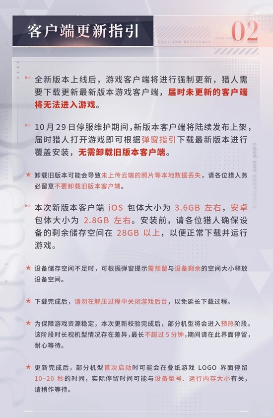 恋与深空10月29日预下载及客户端强制更新安装指南