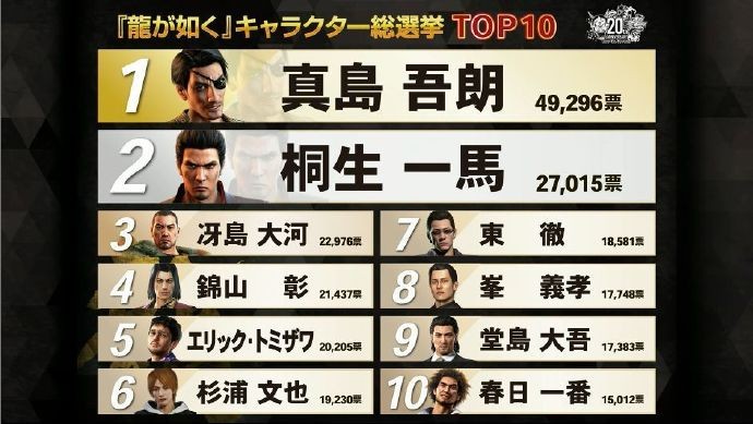 以上就是小编为大家带来的《如龙》系列20周年角色人气投票结果全部内容,更多精彩资讯请持续关注本站。