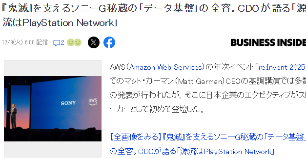 在数字化浪潮席卷全球的背景下,索尼集团再次以创新姿态引领行业变革。近日于re:Invent 2025年度大会上,集团首席数字官小寺刚首次向公众披露了名为Sony Data Ocean的760TB级数据生态系统,这个被称为"数据海洋"的平台不仅刷新了娱乐产业的数据应用标准,更通过《鬼灭之刃》等爆款案例验证了其商业价值。