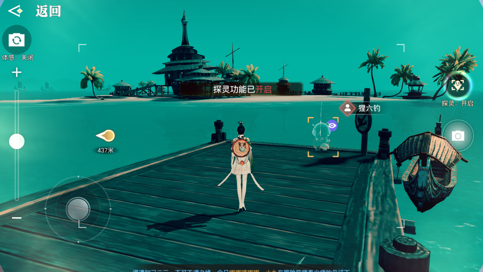2、然后打开探灵相机,就可以在汐海湾的尽头,找到这个透明的人。