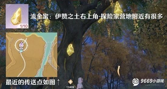 2."流金蜜"的生成点固定于帕克亚火山口探险家营地周边,该区域特有的晶化树木会周期性分泌金色树脂。建议玩家开启地图右上角传送点后,沿熔岩地带边缘巡视,发现树干上的琥珀状结晶即可进行采集。