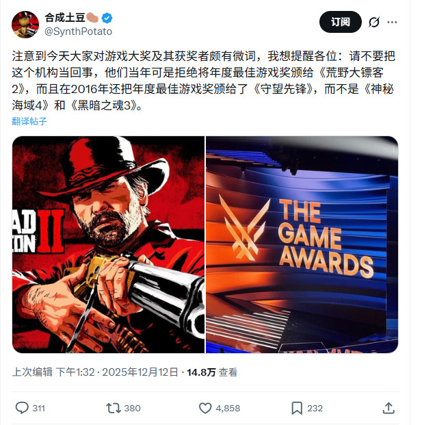 在玩家社区的激烈讨论中,《荒野大镖客2》的落选始终是绕不开的遗憾。这款将开放世界细节推向极致的作品,在2018年与《战神4》的巅峰对决中惜败,其精雕细琢的西部世界至今仍被视作行业标杆。