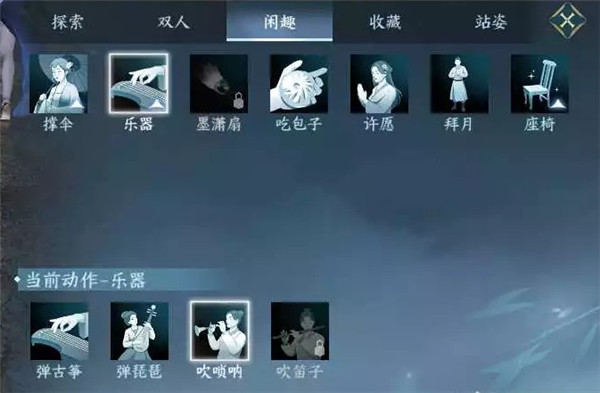 2.吹唢呐动作获取路径:闲趣→乐器→传统乐器