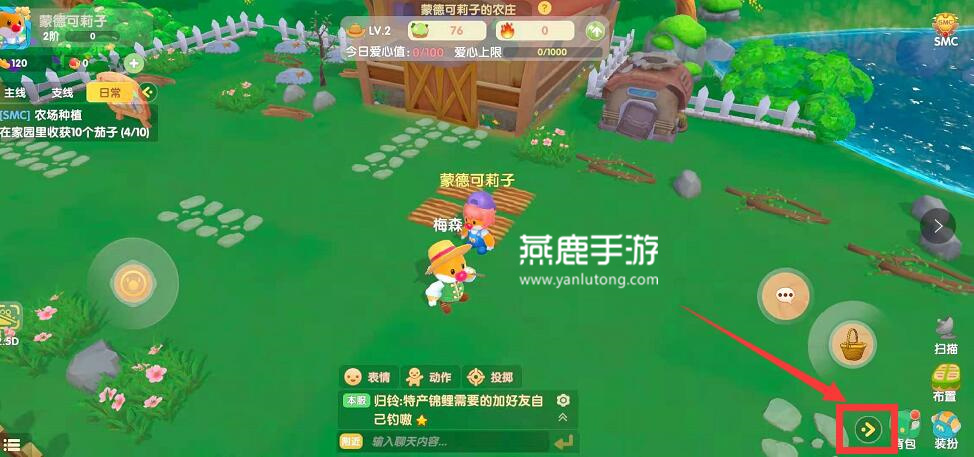 1、首先打开游戏,进入家园的菜地,然后点击右下角箭头;