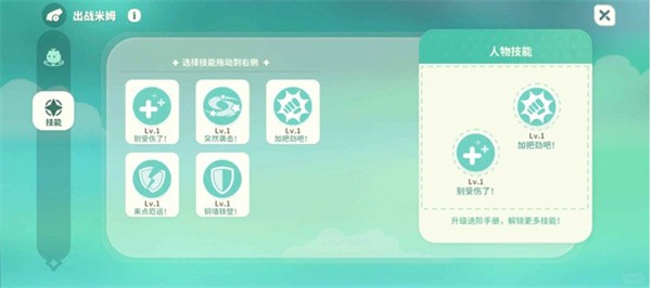 搭配回复或体力类技能(勇气之王词条会掉体力,建议带回体类技能补充)
