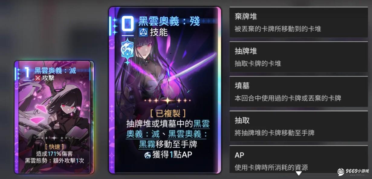 后期大家再使用琳在卡牌当中的灭效果的时候,其实在回合里面可以根据目前所有的卡牌一批来建议,然后所有的卡牌根据这样效果的话,在费用上面的要求就不高,就算是在0费的情况下,利用琳她这样的卡组搭配,也可以打出来一套攻击,如果大家有神闪卡的话,那么在这里打出来一套之后,同样是消耗AP,所以琳目前在费用上面如果玩好机制的话是不太高的,如果要删掉卡牌的话,建议大家直接把盾牌给删掉,这样的话就替换成一个2费的攻击卡。