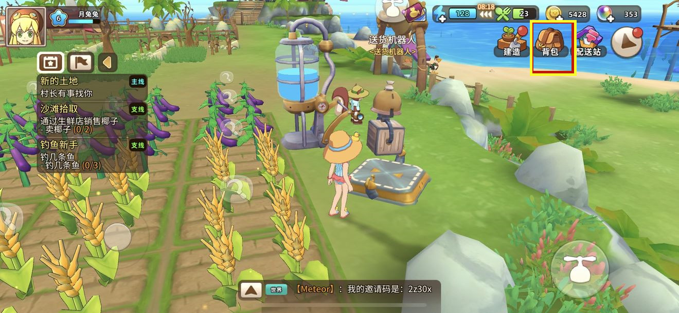 1、首先打开游戏,点击主界面上的背包按钮;