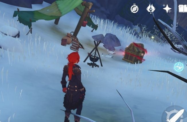 资深玩家发现,宝箱出现的位置其实暗藏玄机——正对着营地入口的岩壁上刻有狐狸形状的冰晶花纹。如果用元素视野观察,还能看到五道代表着喂养天数的光痕,这种细节设计体现了开发团队对叙事完整性的坚持。