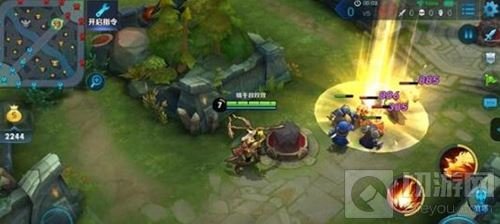 2技能:艾琳朝指定方向跳跃,在空中射出一箭攻击附近一名敌人造成伤害并减速。