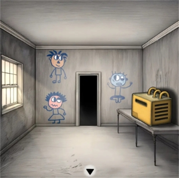 6.接着右走,进入灯泡房间,墙上壁画是泳池的答案,灯泡人需要电池发光获得线索。