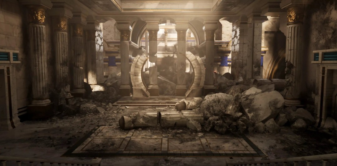 曝光的图片取自该工作室前美术师的个人作品集,据推测创作于2024至2025年间。这些素材清晰展现了项目的艺术风格,涵盖多种环境和物件设计。其中既能看到标志性的星际战士雕像,也有布满重型装备、混乱的、饱受战争摧残的区域。目前曝光最多的是损毁神殿的内部场景,但也能看到另一个更具工业感、被美术师描述为"太空港"的区域。据称这些场景分别对应游戏中的两个剧情任务。