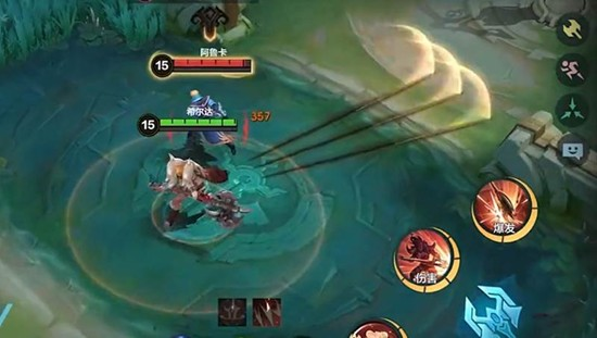 希尔达的被动技能是其核心机制之一。当她进入草丛时,会每秒回复生命值并获得一个护盾,同时强化下一次普通攻击。这次强化普攻不仅能造成额外伤害和减速效果,还能穿透目标,对目标身后的敌人造成溅射伤害。此外,希尔达的所有普攻和技能命中敌人都会叠加“侵蚀印记”,每层印记会降低目标的物理防御和法术防御,这个效果可以叠加多层,持续削弱敌人的防御能力。