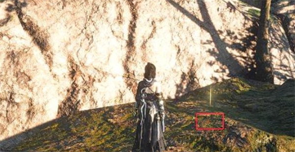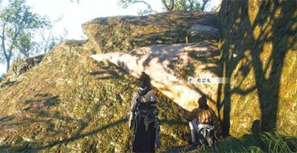 4、回到傅笛礼处,注意他头顶巨石缝中有银叶,使用轻功跳上去互动拾取