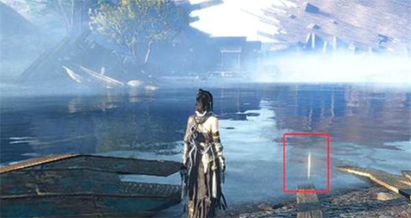 3、前往深泽天涯客东北侧水边,水面漂浮发光木材,靠近互动即可拾取