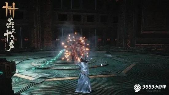 司南剑客开局浮空免疫伤害,场地四角升起可互动锁链,命中后强制将其拽落并附加15%易伤,两条锁链可首尾相连形成铁壁,用于拦截冲锋或保护队友,锁链冷却8秒,需团队沟通轮流使用,飞天阶段持续90秒,拖久会进入狂暴。
