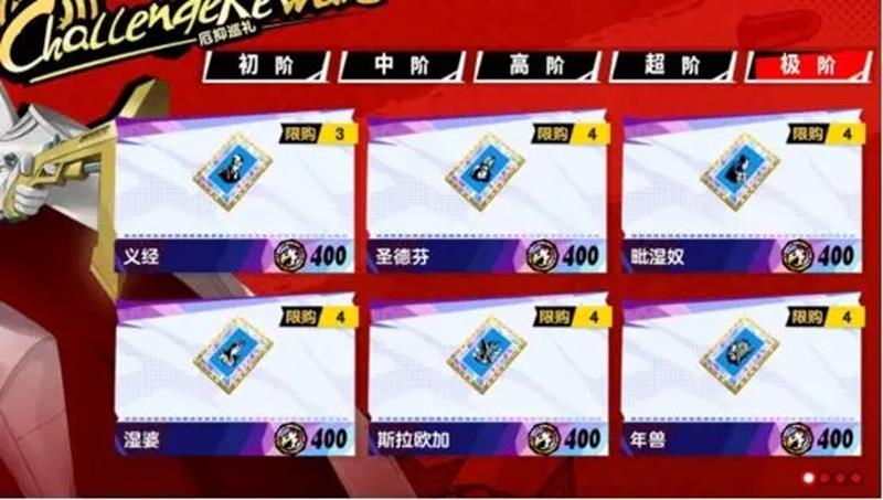 厄抑巡礼商店中,除了极阶的面具,其他都可以刷出来,也可以换取对应阶的部分技能书,极阶的货币比较珍贵,建议先兑换毗湿奴,其单体减防技能比较通用,其他则根据阵容选择。其他兑换商店的资源相对充足,新手前期比较缺"欲望之木",可以优先兑换,然后把抽卡类的全换了,剩下的随意,材料不用刻意屯,三五个月后养成材料就会开始溢出。