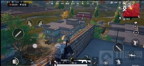 虽然3号楼不能通过楼梯上天台,但是可以通过2号楼天台的围栏跳过去,只要确保1、2号楼没有敌人,那么3号楼的天台就是最佳的"打靶"场所,可以非常清楚的看到4~7号楼内的情况,并且也不用担心楼下会有敌人偷袭,只需要留意一下2号楼内的动向即可。