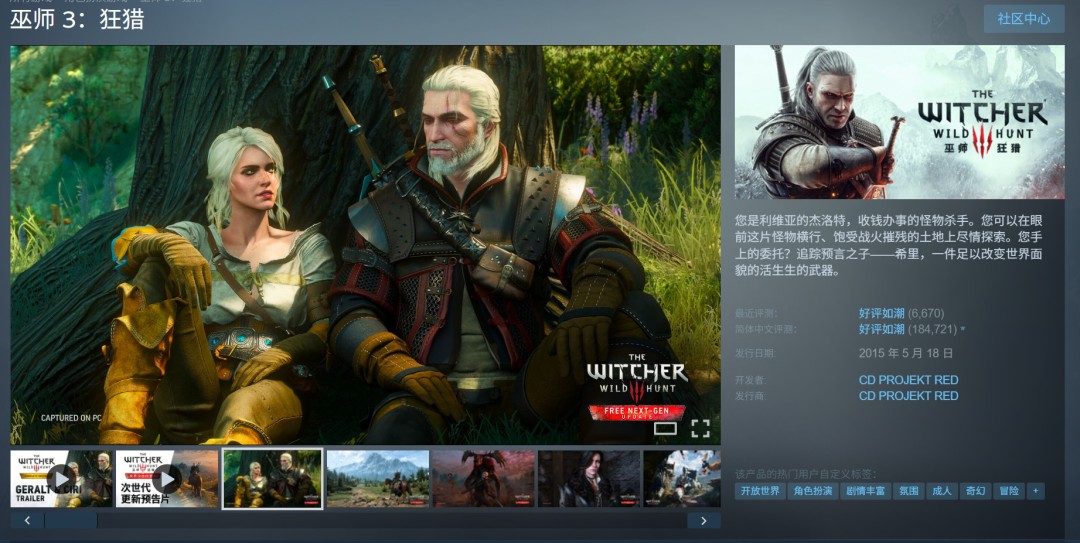 在这些新作真正出来之前,今年正好有个空档期,拿《巫师3》再顶一波,是个很聪明的选择