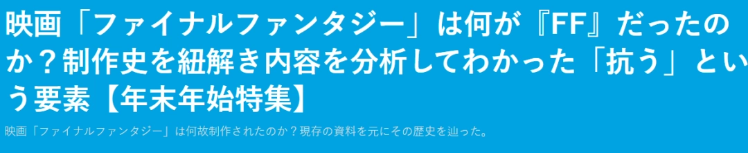 1996年启动《最终幻想》CG电影策划,源起FF7大量CG过场收获的好评。