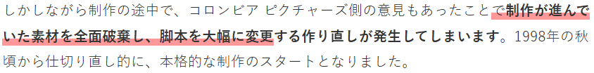 但是问题来了,在制作中途时收到发行方(索尼)哥伦比亚影业的压力,积累的素材全部废弃,剧本也被大改。