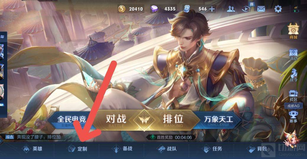 1、启动游戏客户端,在主界面底部导航栏找到定制按钮,点击进入个性化设置中心。