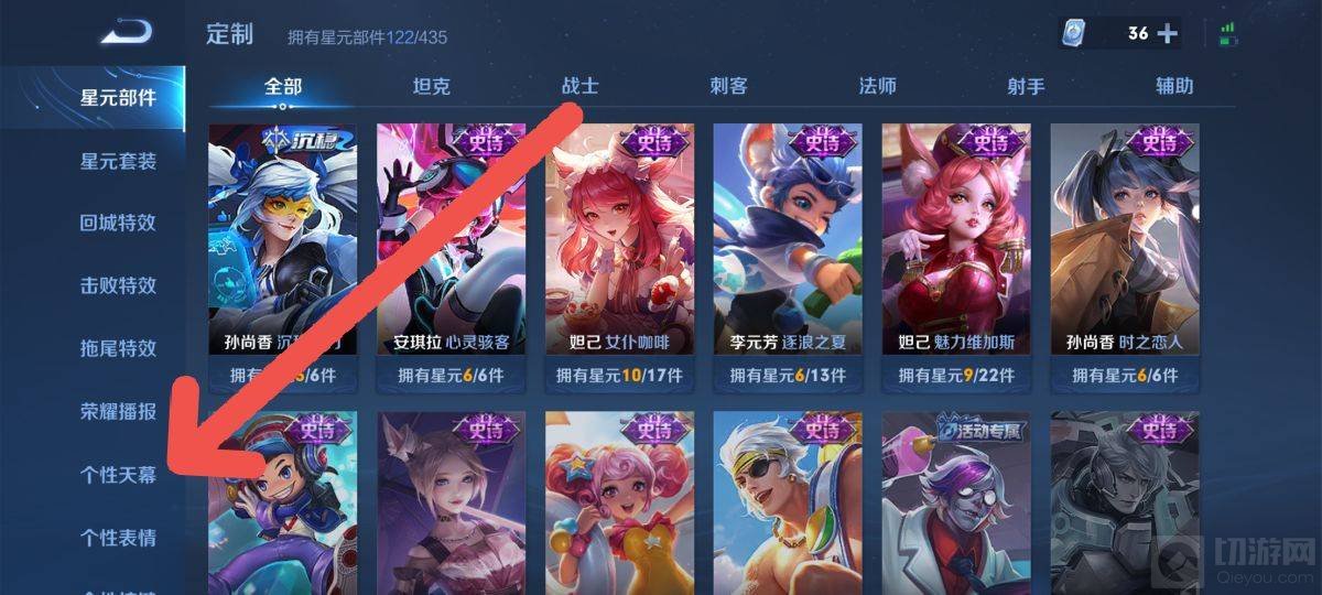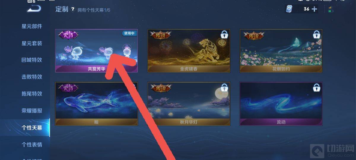 2、在左侧功能面板中选择个性天幕模块,这里汇集了所有可用的天幕资源。