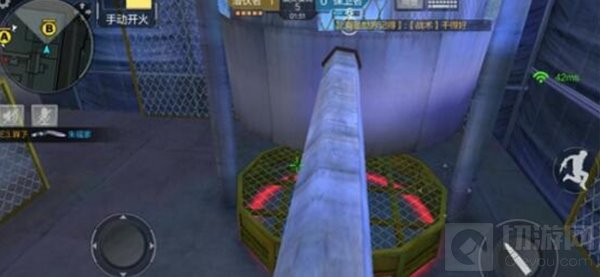 屋顶机场的地图不像地下研究所那般蜿蜒曲折,在范围上相差不大,但是在平坦程度上前者更好,在视觉上,不论是突袭或是正面迎敌都是在露天场所,但这也加大了幽灵们的隐身控制力,因为露天的原因,敌人很可能轻易的发现我们,所以移动速度要快,在敌人还未发现危险之前将其击杀。下图该点适合我们快速走位,在击杀敌人后一直按跳跃键逃离现场即可,如果被敌人捕捉到身影也不用担心他们只会用子弹扫射,只要我们保持不动不会轻易被扫射到。