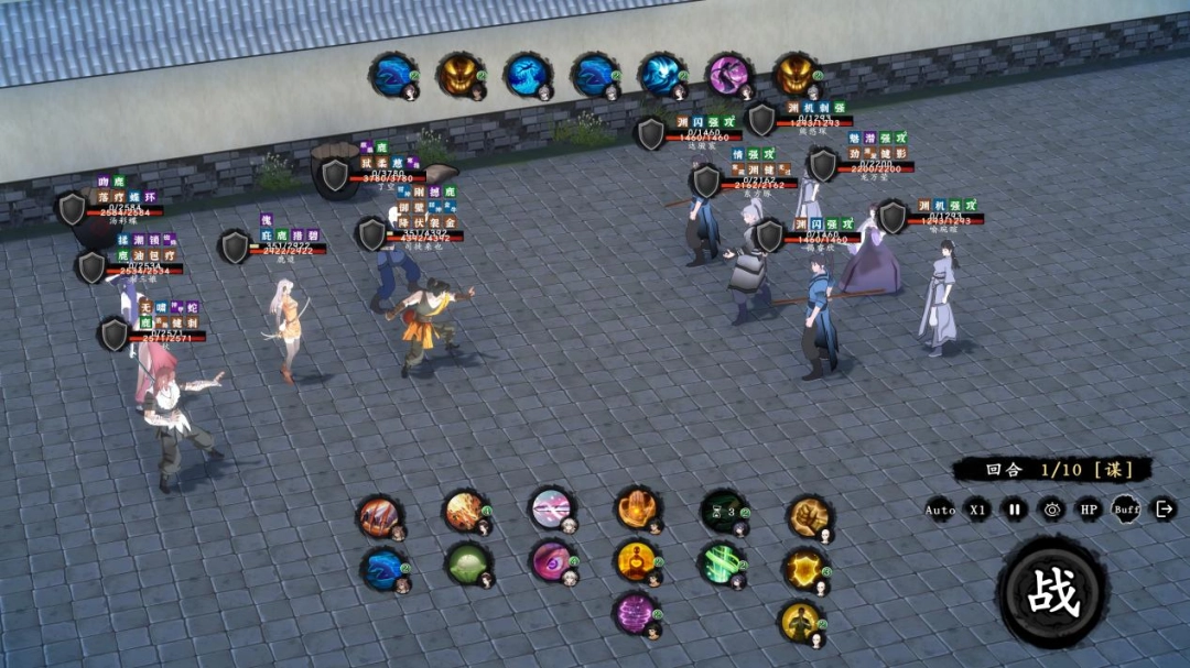 游戏的战斗部分采用了注重战前阵型布置的半自动回合制玩法。在准备阶段,玩家需要根据战场局势手动选择角色所要释放的功法,进入战斗阶段后,角色将根据技能指令及自身站位依次释放技能来打击敌人或保护己方队友。