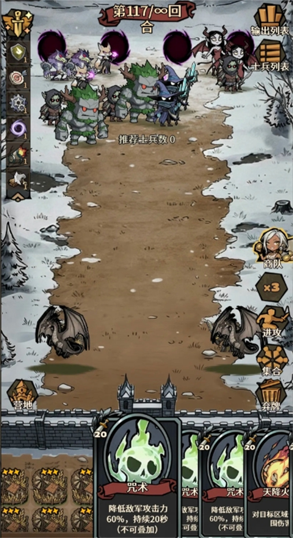 在你大体成型之后,只依靠火龙的百分比伤害时,再次退出,重置点数,第三页依旧点满出售卡牌收益,再点满额外士兵,手牌扩容。