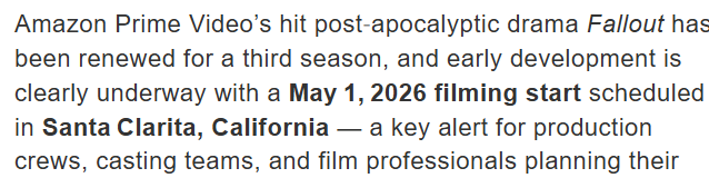 《辐射》真人剧第三季官宣5月1日开拍-故事线直连《辐射5》