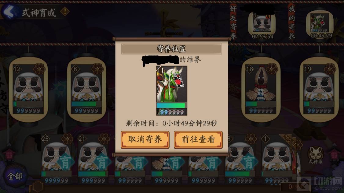 三、最后点击"我的寄养"即可看到自己在好友结界寄养的式神了。