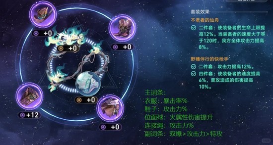 辅助向:快枪手四件套搭配不老者的仙舟两件套,通过套装效果为全队提供攻击力加成和速度增幅,显著提升团队爆发窗口期的输出效率。