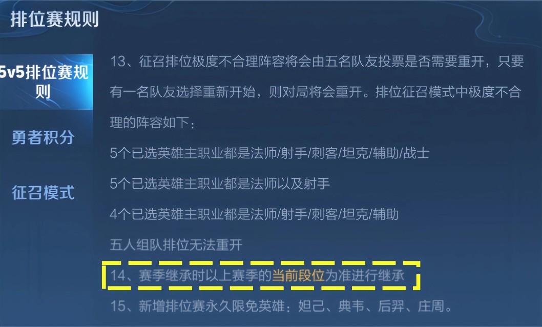 排位段位继承说明