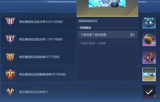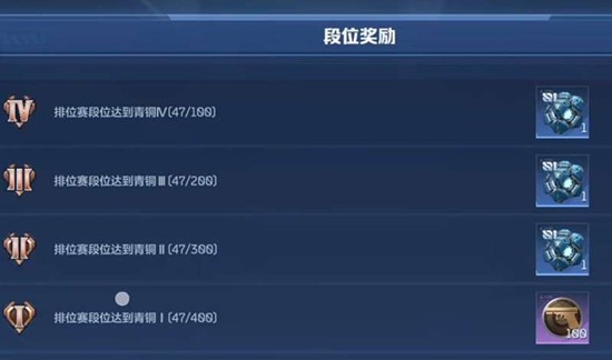 每位玩家初始段位均为青铜,需要通过参与排位对战积累胜点来提升。每个大段位下又细分为五个小等级,例如青铜I至青铜V,当玩家将当前大段位的小等级提升至最高后,即可晋级至下一个大段位。