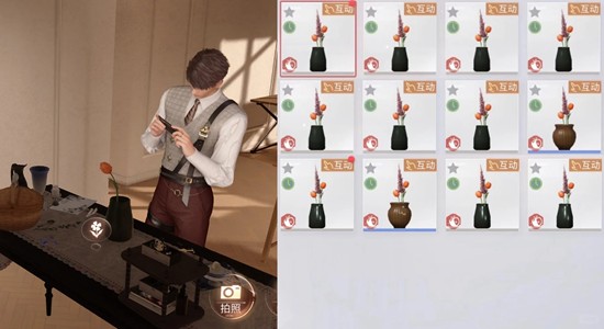 经过持续测试发现,触发插花行为存在隐藏机制。首先,男主当前情绪状态至关重要,"愉悦"状态触发概率约30%,而达到"幸福"状态时概率可提升至60%。其次,花材摆放位置也有讲究,建议将共享花箱放置在距离插花桌3-5步的位置,这样男主完成插花后会自然回到互动区域。