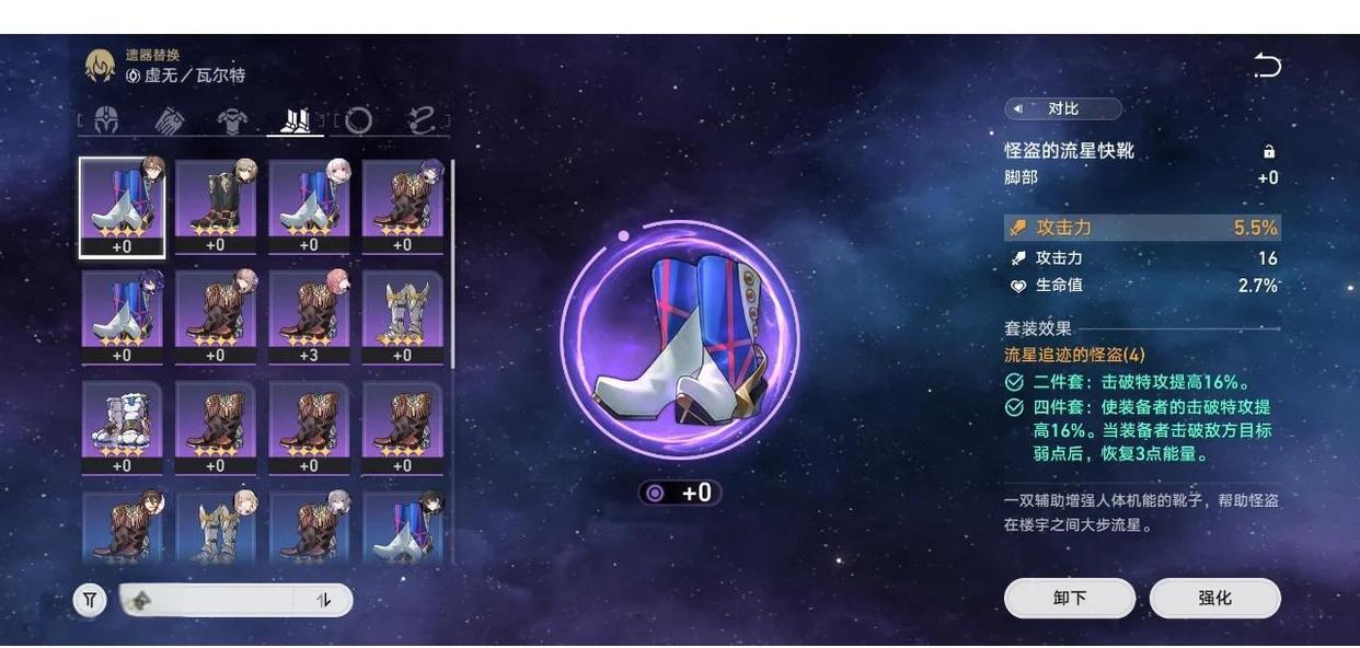 2件套套装:推荐泛银河商业公司2件套,加效果命中,这对瓦尔特减boss速度非常有用。