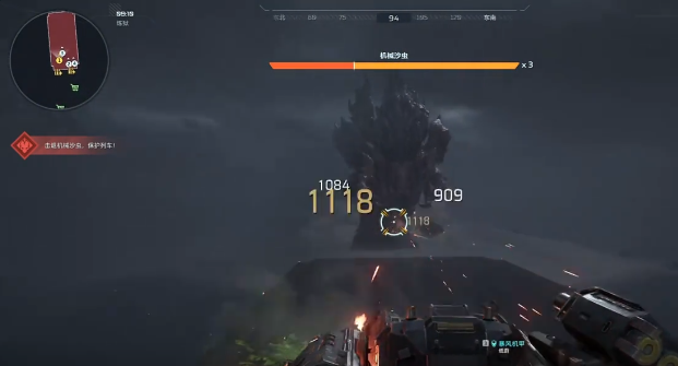 第二阶段Boss"机械沙虫"强调团队走位协同。其技能体系包含四项:一是地板啃咬,表现为地面裂痕蔓延,玩家只需后撤两步即可完全规避;二是小虫召唤,生成多只高速移动的机械幼体,威胁较低,可边移动边清理;三是中场翻越,Boss以高速横向贯穿战场中心,所有成员须提前撤离中线区域;四是绿色激光扫射,属于高危技能,必须在Boss腹部弱点激活瞬间进行精准射击,方可中断激光释放流程。