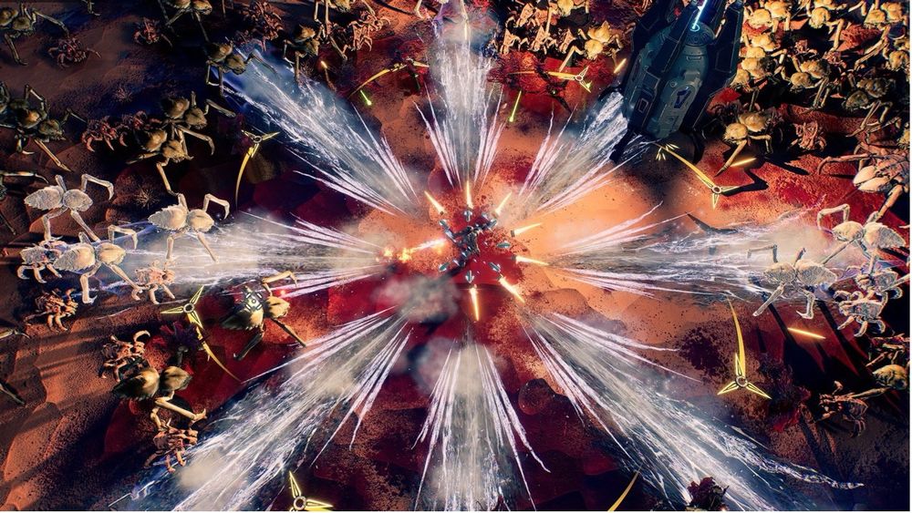 新模式「基地防御」:异星虫群向佣兵基地发起反攻,玩家需固守阵地,抵御源源不断的虫潮,并可召唤泰坦机甲扭转战局。