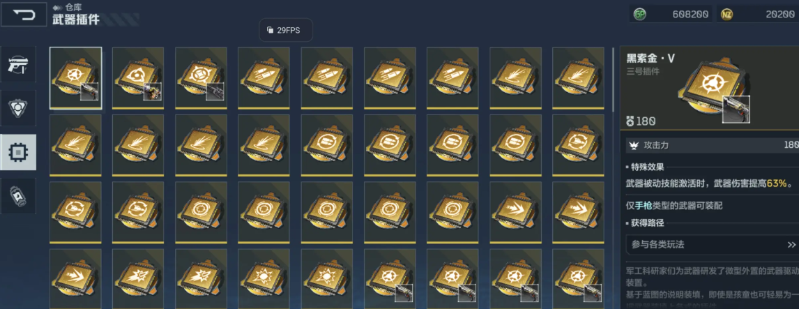 插件系统受固定槽位限制,需持续优化占用结构。建议定期清理低阶(如白色、绿色)插件,通过分解获取基础材料,为高阶插件(如金色、红色)的升星与重铸提供资源支撑。装配时应严格遵循武器插槽类型匹配原则,确保功能生效。对于非核心道具与阶段性过渡物品,亦应及时分解处理,维持仓库空间高效利用。