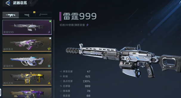 主武器推荐使用雷霆999。该枪拥有高达99发的初始弹匣容量,配合较长的持续射击时间,大幅降低换弹频率,有效缓解新手操作压力。其主动技能"闪电链"具备范围连锁判定机制:首次命中目标后,电流可向半径2.5米内最多3名敌人跳跃,每次跳跃造成基础伤害的70%,并附加1.5秒感电效果。在清剿密集小兵或应对突袭时,该技能能显著提升单次输出效率与生存容错率。