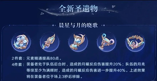 后台输出定位首选晨星套,其80点元素精通加成配合60%月曜反应增伤堪称质变,但需注意两点:队伍必须配置满辉角色才能触发完整加成,且主控切换时间需控制在3秒内;