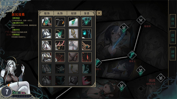 首先是尸姬开局妆容除头饰外其他选择初始比较稳定,固定刷新价格方便刷取需要的天赋、效果、装备......,头饰缠龙断月枝刷掉不太好的负面效果(最好不要选普攻后眩晕,会极大影响太岁输出,开局带毒前期数值不够最好也躲开)。