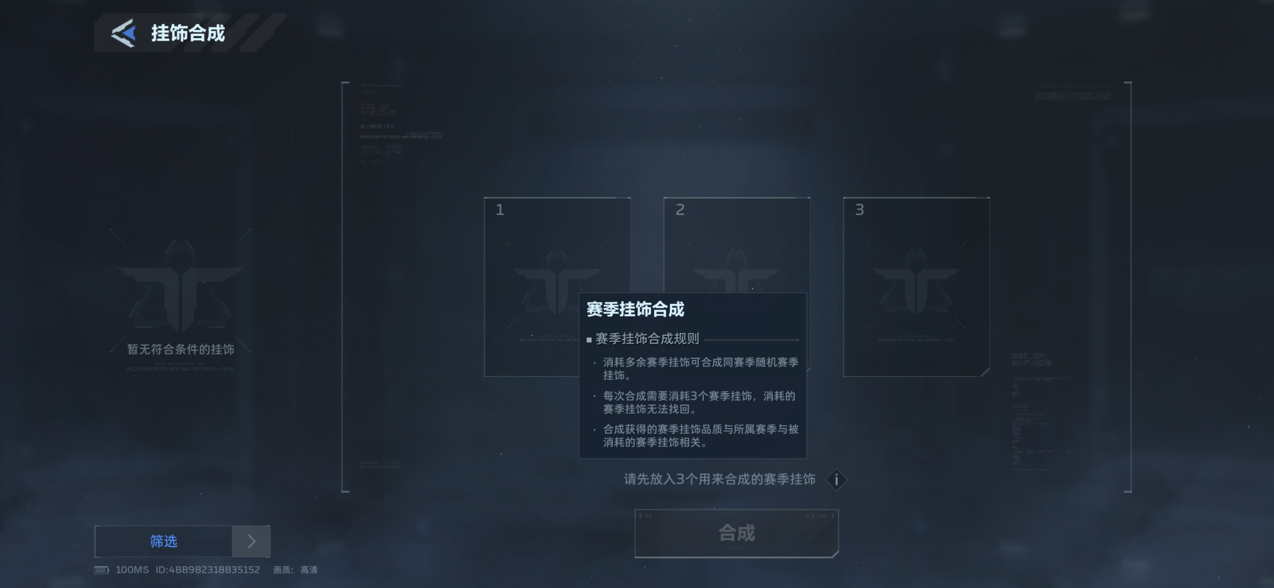游戏上线后同步开放了多类主题挂饰,支持直接装配于主武器部位,显著提升视觉辨识度与角色表现力。其中,赛季专属挂饰需通过合成解锁,每次合成固定消耗3个同系列挂饰,合成路径清晰可控,无随机失败机制。