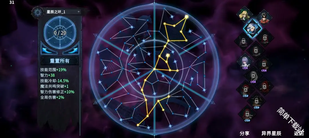 11、阿尔瓦德的星辰之环加点分享码: