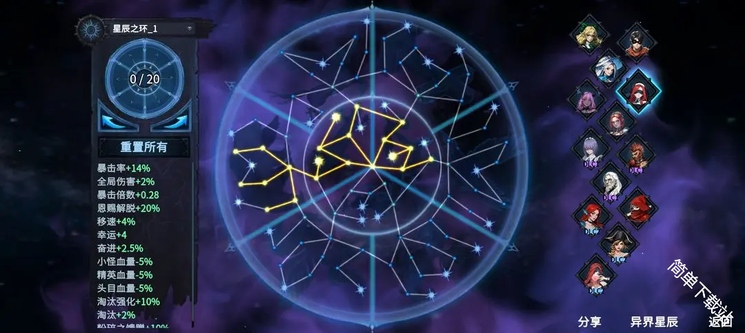 神器行者中关于星辰之环节点可以直接导入其他玩家的分享码,以此来直接在游戏中体验到不同属性下的星盘。下方为大家整理收集了一些星辰之环加点的方案码详情合集!