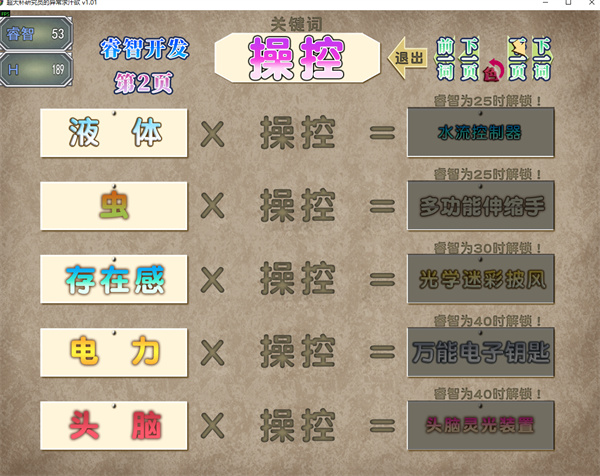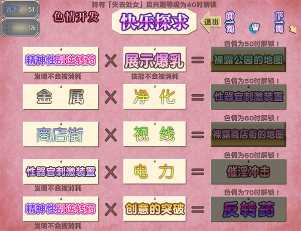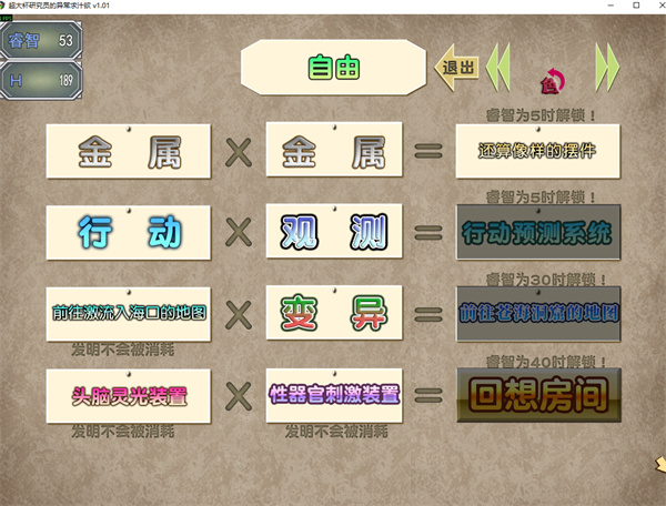 探索至此,我们能应该是什么单词都不缺的,合成表能合的东西都合一下方便我们做不同结局。(包括[快乐探求状态]的H合成)