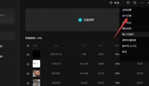 打开剪映专业版首页,点击“支付记录”进入。