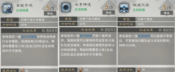 【假途灭虢】使城池内b队无视卡位行动,满级消耗60策书,适用性较窄。
