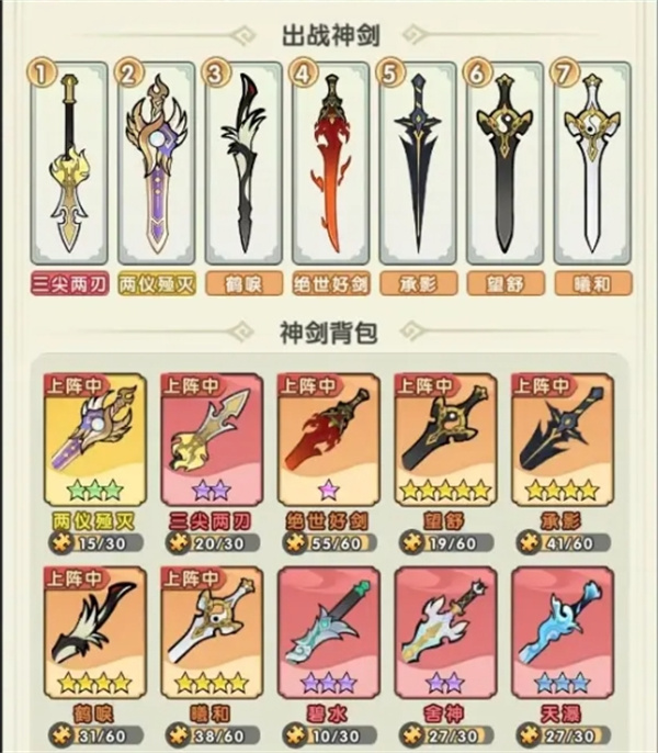 基本都是黄色神剑,成型快,跟氪佬比起来,更适合平民体质。